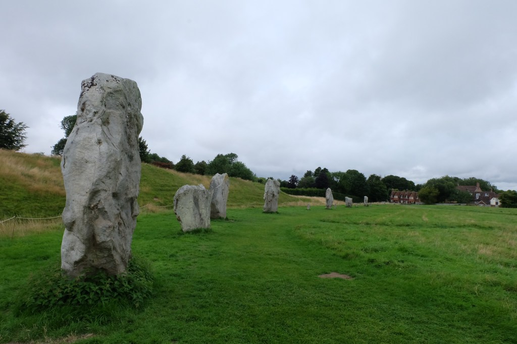 記得一早由Bibury開車到此地,天空仍下著雨,天氣陰陰的,等到終於下了車,雨停了,天氣涼爽非常適合漫步。我慢慢循著小路,走進感覺相當神秘的巨石圈中。雖然去過 Salisbury 的巨石陣,但並不能走進其中,因此到Avebury能走進去,莫名也覺得好像感應到了什麼。