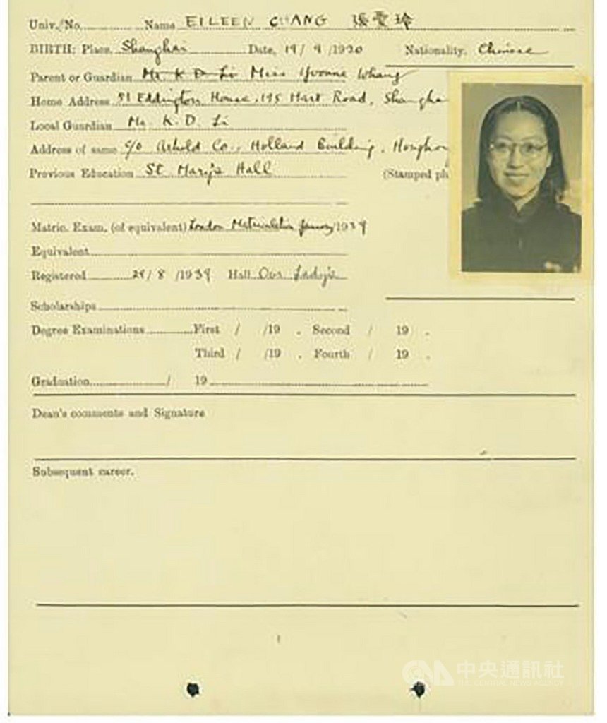 香港大學舉辦張愛玲文獻展:https://www.cna.com.tw/news/acul/202009290126.aspx