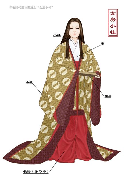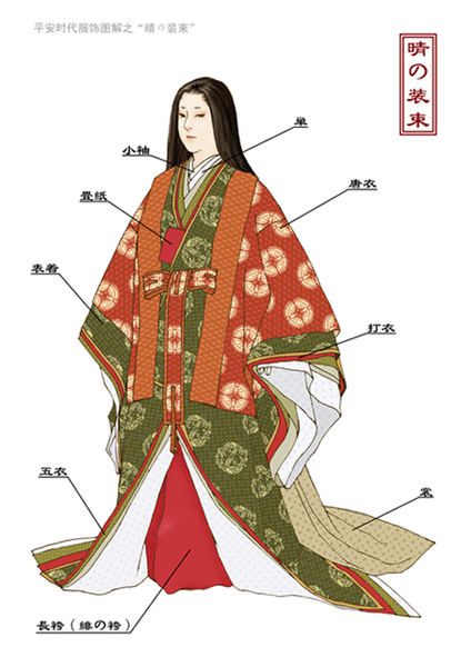 圖片取自網路,平安時代女房穿著與女官穿著(正裝,十二單)。