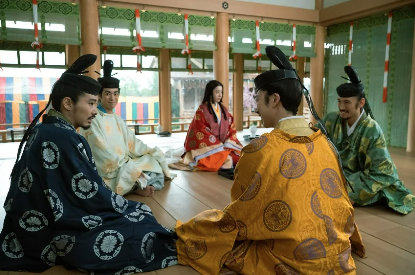寬弘四年(1007)三月上巳節,這個節日在中國古代是送春也是舉行祓褉的日子,用以去除不祥。在平安時代的日本也是,以前都會在水邊舉行儀式,後來演化為曲水之宴,大家熟知的〈蘭亭集序〉其實就是在這一天王羲之揪了一群詩友上山舉行曲水之宴,以杯盛水,放在水面,當杯子停在誰面前就要做詩一首,頗為風雅。後來王羲之作序,大家的作品輯為詩集,才有了傳世之作〈蘭亭集序〉,不過這個作品的重要行有二,一是文學上的,一是書法史上的,文字留存,但真跡無蹤,世人只能見得摩本而無法看到王羲之書法之妙。劇中的這場宴會和大雨,在道長《御堂關白記》裡有記錄。